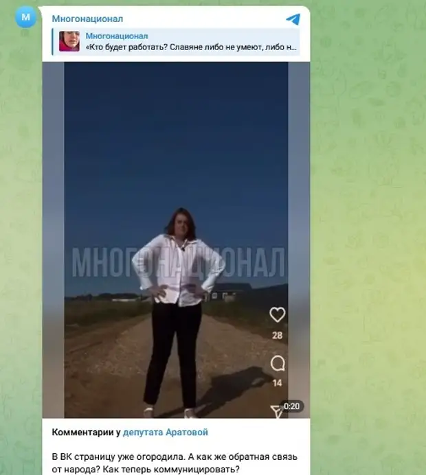 "А как же обратная связь от народа? Как теперь коммуницировать? Надеемся, что реакция её руководства последует, а лучше правоохранительных органов, на оскорбления по национальному признаку", - пишет "Многонационал".