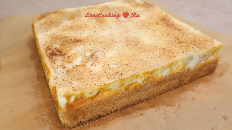 Присыпаем верх пирога сахаром, перемешанным с корицей.