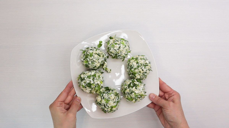Делим начинку на 6 частей. Каждую часть скатываем в шар.
