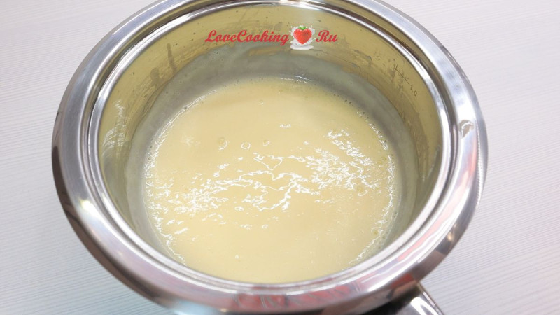 Переливаем в сотейник. Доводим до кипения на средне-медленном огне, постоянно перемешивая.