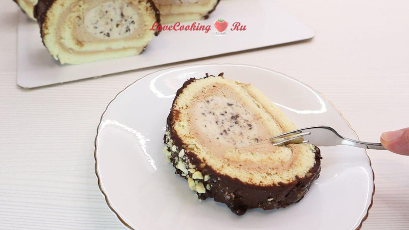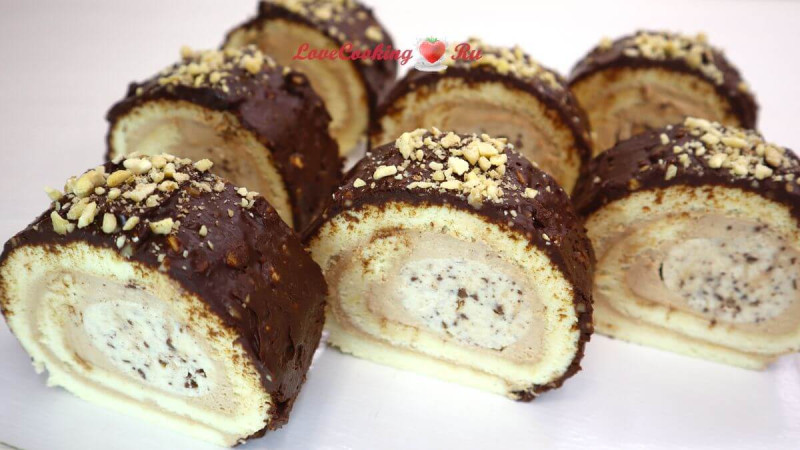Шоколадно-ванильный бисквитный рулет