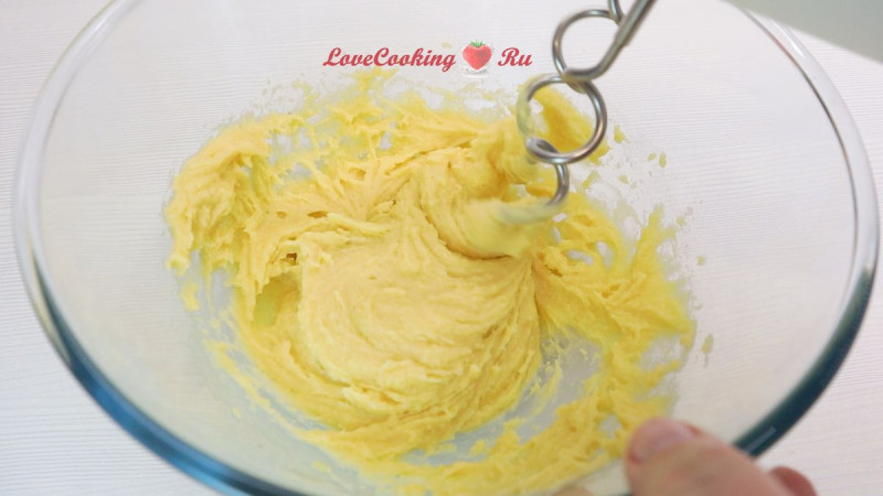 Постепенно добавляем яйцо и желтки + ванилин, продолжая взбивать до однородной массы.