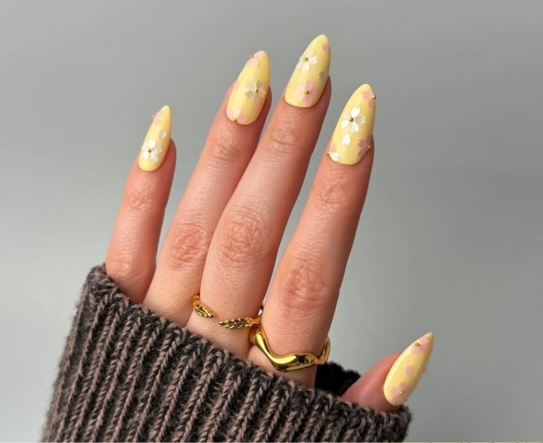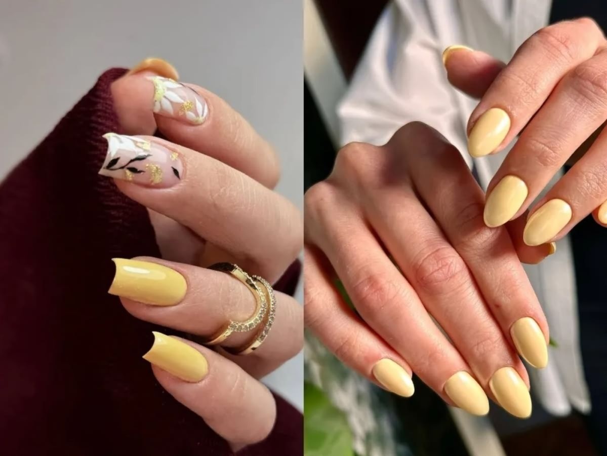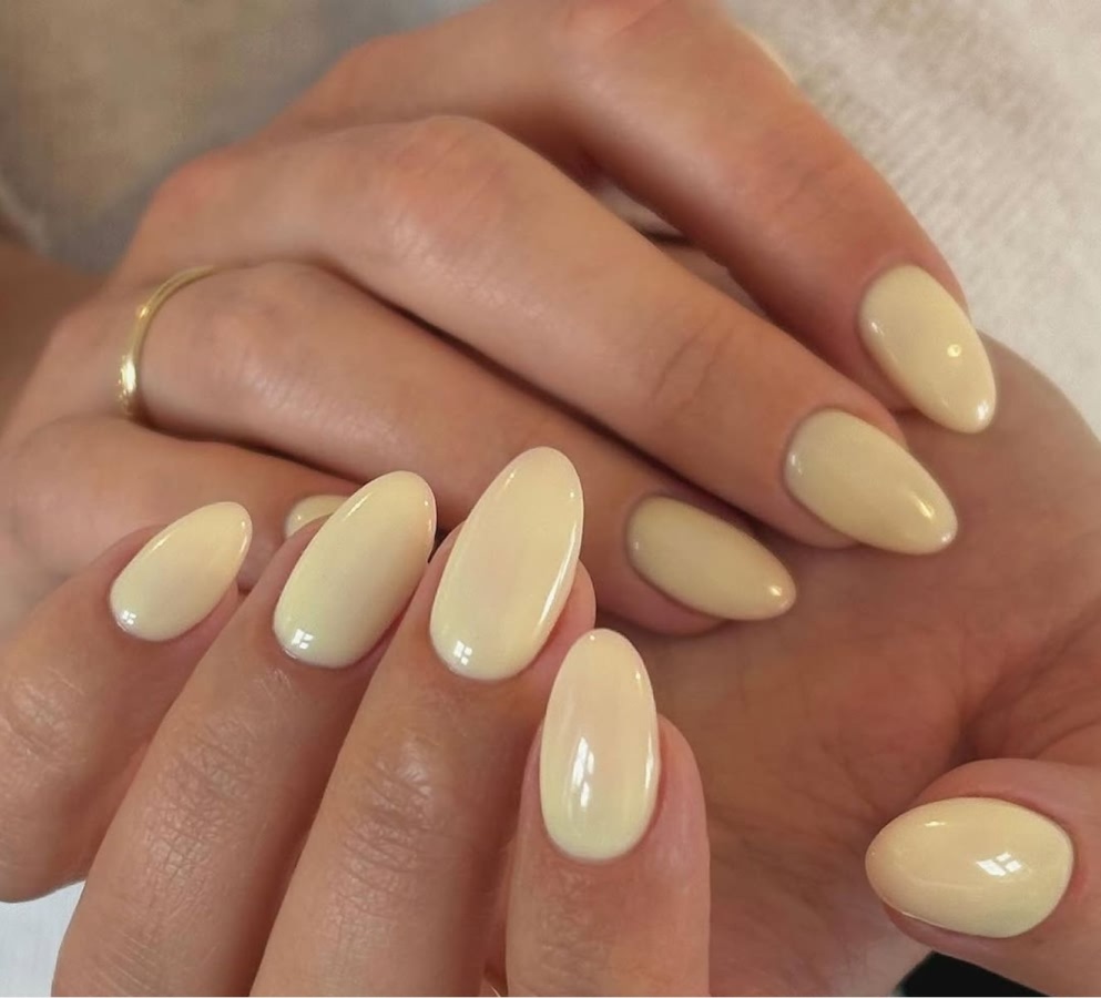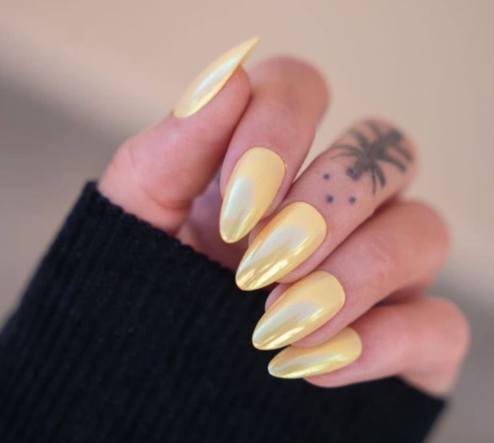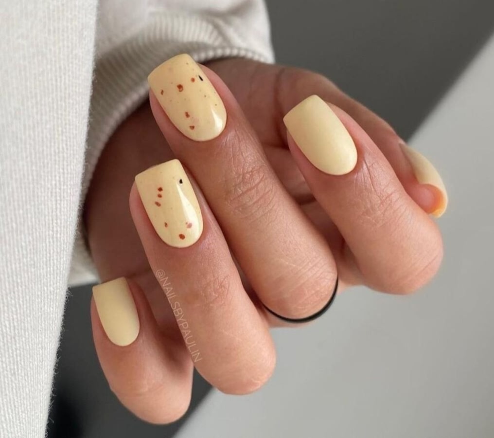 Этот нейл-дизайн играет с восприятием формы ногтя. Часть пластины остается неокрашенной, а пастельно-желтый цвет наносится художественными мазками или геометричными фрагментами.