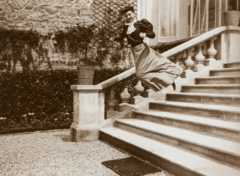 Жак-Анри Лартиг поймал в кадр девушку, бегущую по лестнице, 1905