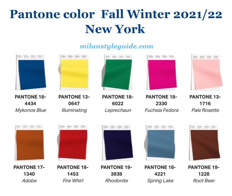 Классическая палитра модных цветов Pantone Fall/Winter 2021-2022 NY