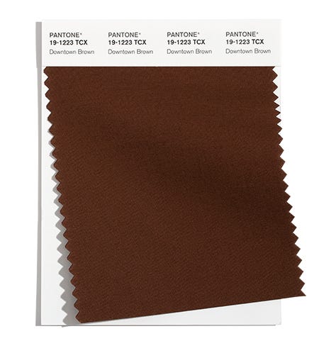 Глубокий коричневый цвет, гордый и стабильный, напоминает нам, что все таки это осенняя палитра. Downtown Brown — это насыщенный земной оттенок, но все же очень “городской”. Возможно из-за легкого розового подтона. Попробуйте комбинировать Downtown Brown в одежде с яркой Fuchsia Fedora или нежной Pale Rosette.