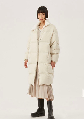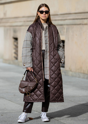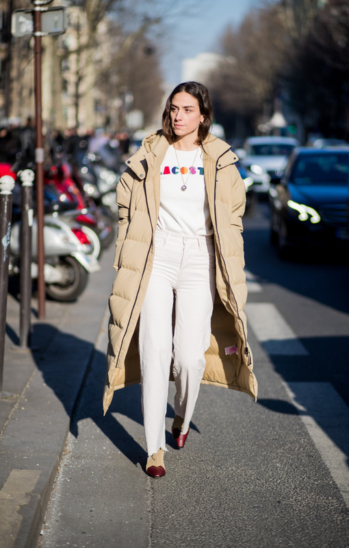 Молочные, кремовые и светло-белые пуховики неизменно производят вау-эффект. Вот что говорит об этом руководитель VIP-направления по работе с клиентами ЦУМа Ракель Першкова: «Можно не бороться с окружающей обстановкой, вооружившись одеждой духоподъемных цветов, а мимикрировать под нее при помощи светлых комплектов. В качестве примера — простой и при этом запоминающийся образ итальянского инфлюэнсера Эрики Болдрин, подобравшей к белым джинсам и расслабленной светлой футболке кремовое пуховое пальто, цвет которого навевает мысли о песочном печенье и флэт-уайте из «Кофемании»».