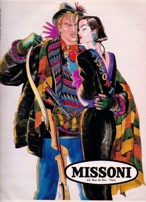 Иллюстратор Antonio Lopez для бренда Missoni.Многоцветие и чёрный. Уникальный колорит 1980х.12 ноября 2020Захватывающее своей экспрессией и выразительностью сочетание цветов.Пришёл из графики, в те годы ещё только ручной работы.В таком ярком виде в моде не повторялся ни до, ни после.Но исторически восходит к модным иллюстрациям 1920х.