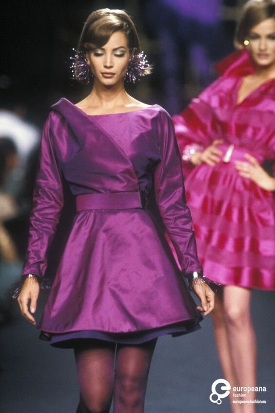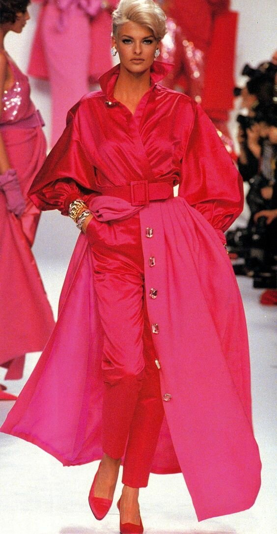 Linda for Christian Dior FW 1991-1992.Розовый 80х!5 октября 2021Не только фуксия.Цвет - как вера в бесконечный мирный мир.Цвет возвращался в таких же пропорциях в 2000е, но не в таком благородном изяществе оттенков.