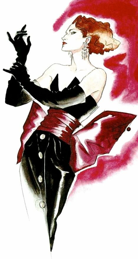 Yves Saint Laurent, illustration Antonio Lopez, 1983.Фуксия и чёрный 1980х.11 ноября 2020Классика уходящей Старой Школы Высокой Моды.Одно из любимых сочетаний Ив Сен Лорана и Джанфранко Ферре.А так же культового иллюстратора из Южной Америки - Антонио Лопеса.