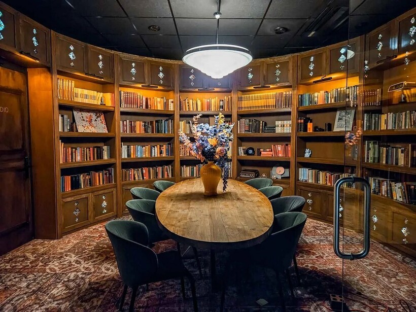 Высокие потолки и витражные окна создают уникальную атмосферу