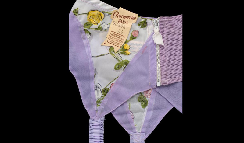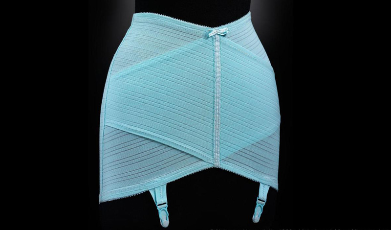 Появление в 1940 году нейлона изменило внешний вид и функциональность белья. Легкое белье эффективно согревало и охлаждало, хорошо стиралось, быстро сохло и не требовало глажения. Исследование тех лет подтверждает, что синтетические ткани были особо популярны среди женщин младше 45 лет, которые старались не отставать от моды. Этот пояс с подвязками был сделан в Париже в конце 1950-х годов.