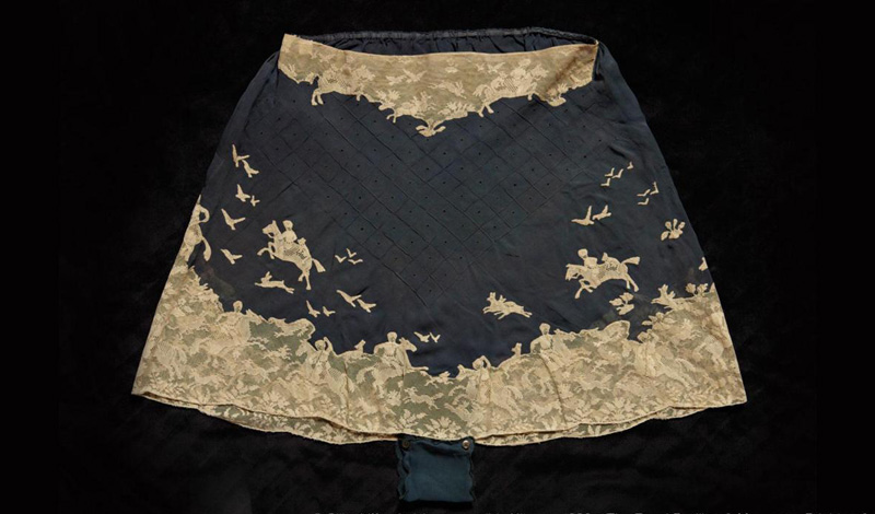 Французские панталоны были популярны среди представителей высшего сословия в 1930-е годы. Это изделие из шелка-шифона с вышивкой, изображающей соколиную охоту, особенно роскошно. Их носила жена британского дипломата, бывшего в 1940-1942 годах послом в Багдаде. В своей книге «Воспоминания жены дипломата» Бетти Холман рассказывает, как демонстрация этой вещицы помогла ей найти общий язык с женами местных чиновников.