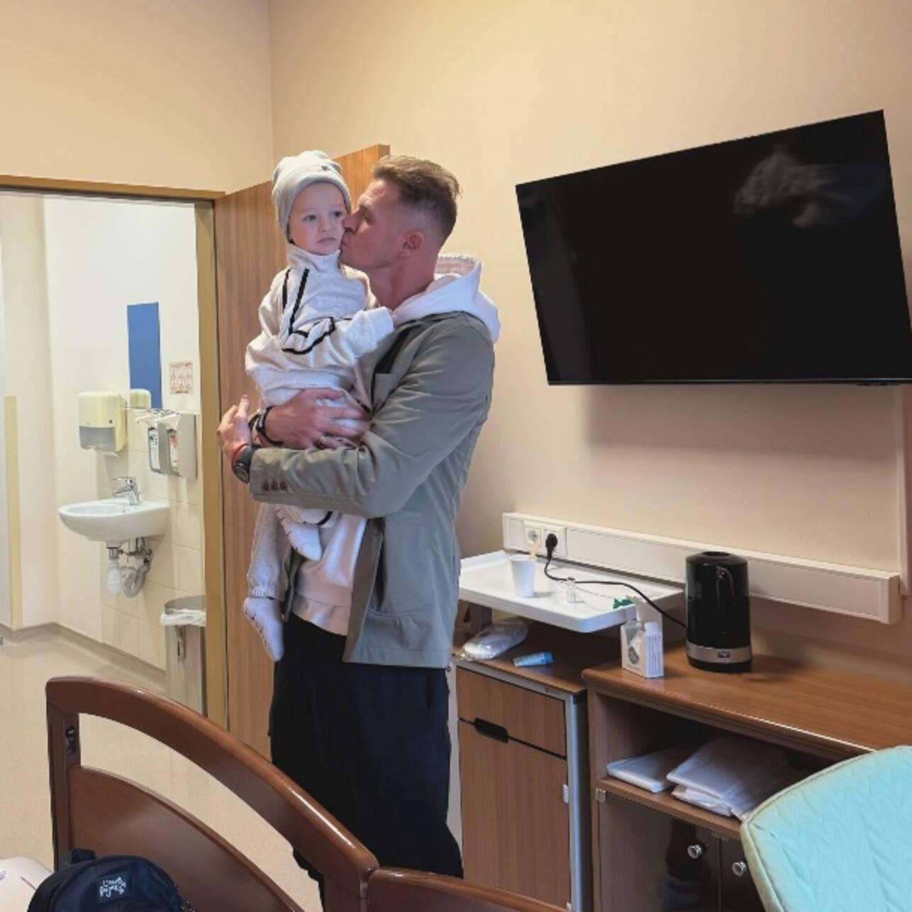 Костенко также показала несколько снимков из больницы. Ярослав серьезно напугал своих родителей, но сейчас уже идет на поправку. На фото Тарасов держит младшего ребенка на руках, стоя в палате частной клиники.