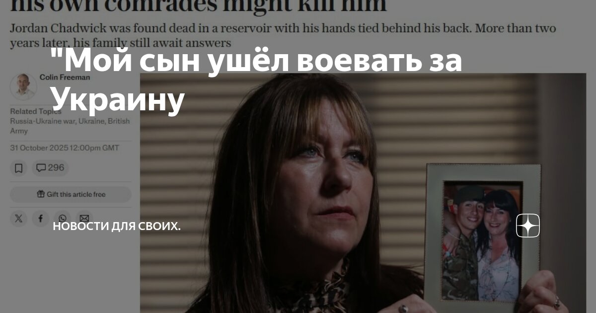 "Конечно, я знала, что Джордан рискует, отправляясь на Украину. Но представить не могла, что его убьют свои же товарищи", - теперь его мать Бренда Чедвик льёт слёзы в интервью британской газете The Telegraph.