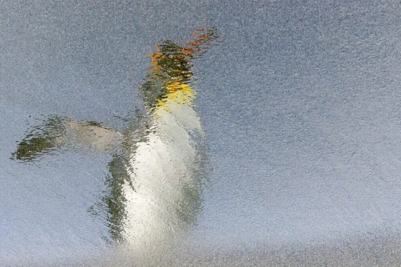 Пингвин, отражающийся в море