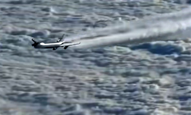 Подобные записи сделать удается довольно редко. По крайней мере, пассажирам — пилоты видят другие самолеты из кабины постоянно.
