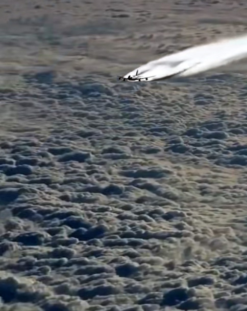 Редкие кадры Boeing 747 поразили пользователей: огромный самолет скользит над облаками словно по волнам, оставляя за собой длинные белые шлейфы. Снятый с борта другого лайнера, он будто плывет сквозь воздушный океан, мерно рассекая небо при скорости около 900 километров в час и высоте 10 тысяч метров.