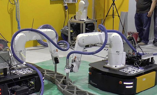Японская корпорация Shimizu одной из первых внедрила роботов на стройку. «Robo-Carrier» перевозит тяжелые материалы по этажам, ориентируясь в пространстве и обходя препятствия. «Robo-Welder» автоматически сваривает металлические колонны с помощью лазеров, а «Robo-Buddy» устанавливает потолочные панели и вкручивает болты.