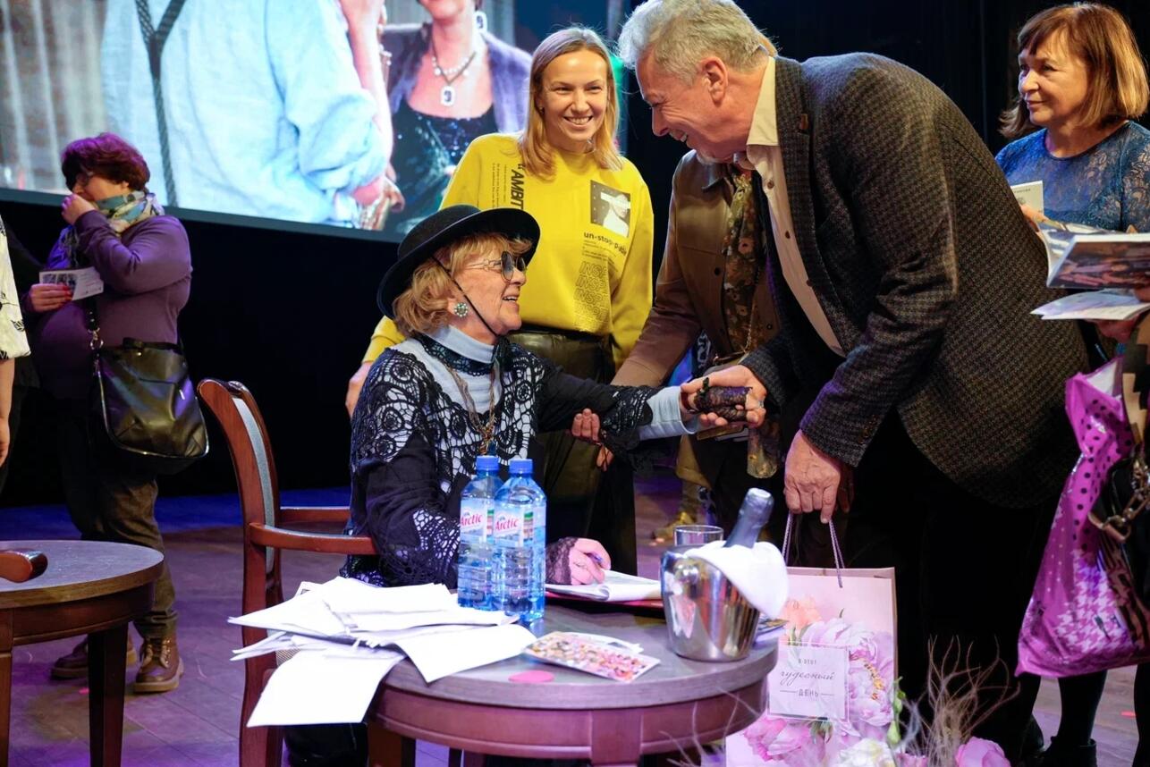 Свою юбилей кинорежиссер Алла Сурикова отметила в Туле, что неудивительно – там сейчас проходит II Российский фестиваль «Кино и музыка», президентом которого она и является. Причем не номинальным, а самым что ни на есть настоящим: с присущей ей энергией Алла Ильинична активно занимается и самим фестивалем, и режиссурой роскошного концерта в честь своего юбилея. Хотя поверить, что этой активной, стильной, хулиганистой даме исполнилось 85, было невозможно. Сурикова с удовольствием подхватывала песни, пускалась в пляс с гостями вечера под музыку из своих фильмов, читала стихи и отвечала на вопросы зрителей. И принимая подарки, щедро одаривала в ответ: кружкой с памятной фотографией и автографом, своими книгами и либо совсем уж раритетными вещами.