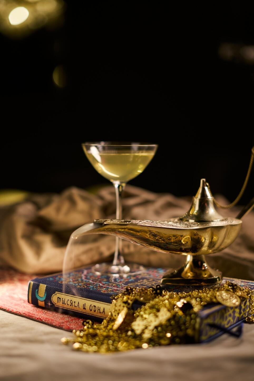 Совместно разработанное меню погружает в атмосферу «Тысячи и одной ночи» с помощью изысканных ароматов и тонких вкусов восточной кухни. В него вошли следующие позиции: нежная долма в виноградных листьях с зернами граната и соусом мацони, сочный люля-кебаб с узбекскими томатами и свежей зеленью, а также авторский хумус с печеным баклажаном и фисташковой пастой. Особого внимания заслуживают авторские коктейли шеф-бармена сети ресторанов «Дымзавод» Антона Герасимова: «Лампа Аладдина» на джине с жасмином, виноградными нотами и креативной подачей в тематической посуде, а также яркий «Восточный» с ромом, апельсиновым ликером и тропическими акцентами маракуйи.