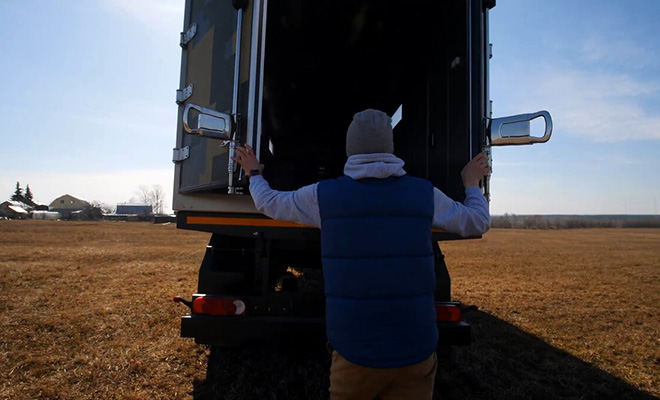 В основе — легендарный КАМАЗ-43118, известный своей выносливостью и проходимостью. Кабина и рама остались почти без изменений, но все остальное переделано под автономные путешествия: мощная лебедка, дополнительные топливные баки, наружное освещение и вместительные отсеки для хранения. Благодаря этим доработкам машина способна неделями жить вдали от цивилизации, не уступая по комфорту стационарному дому.