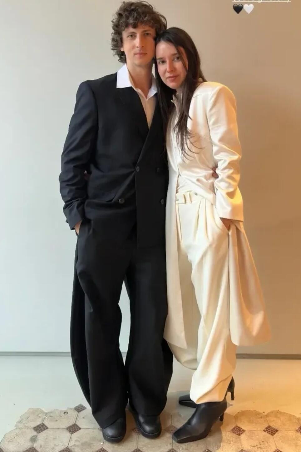 В Сети появились фото с церемонии, на которых можно заметить ,что от белого платья невеста отказалась и надела светлые широкие брюки с длинным жакетом, а жених облачился в черный костюм. Фаты и укладки у Елены тоже не было, так что она выглядела максимально естественно и немного небрежно. Судя по всему, таким образом молодожены дали понять, что не стремятся к традиционной свадьбе и чужды условностям.