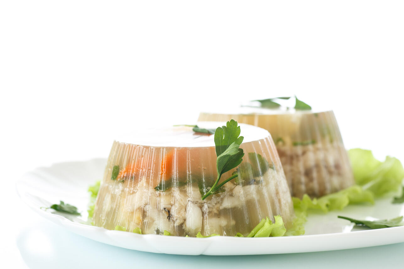 Чтобы сделать блюдо оригинальным, можно использовать небольшие формочки для кексов или украсить его не только зеленью, но и оливками, ломтиками лимона, яйцами. Еще отличная идея — заменить рыбу другими ингредиентами: овощами или грибами. Так, в рецепте можно сочетать брокколи, цветную капусту, горошек и кукурузу, сделав яркое и красивое заливное. Прекрасно подходят для новогоднего стола и грибы, и лучше всего сушеные. Тогда из них получится насыщенный и ароматный отвар для заливного.