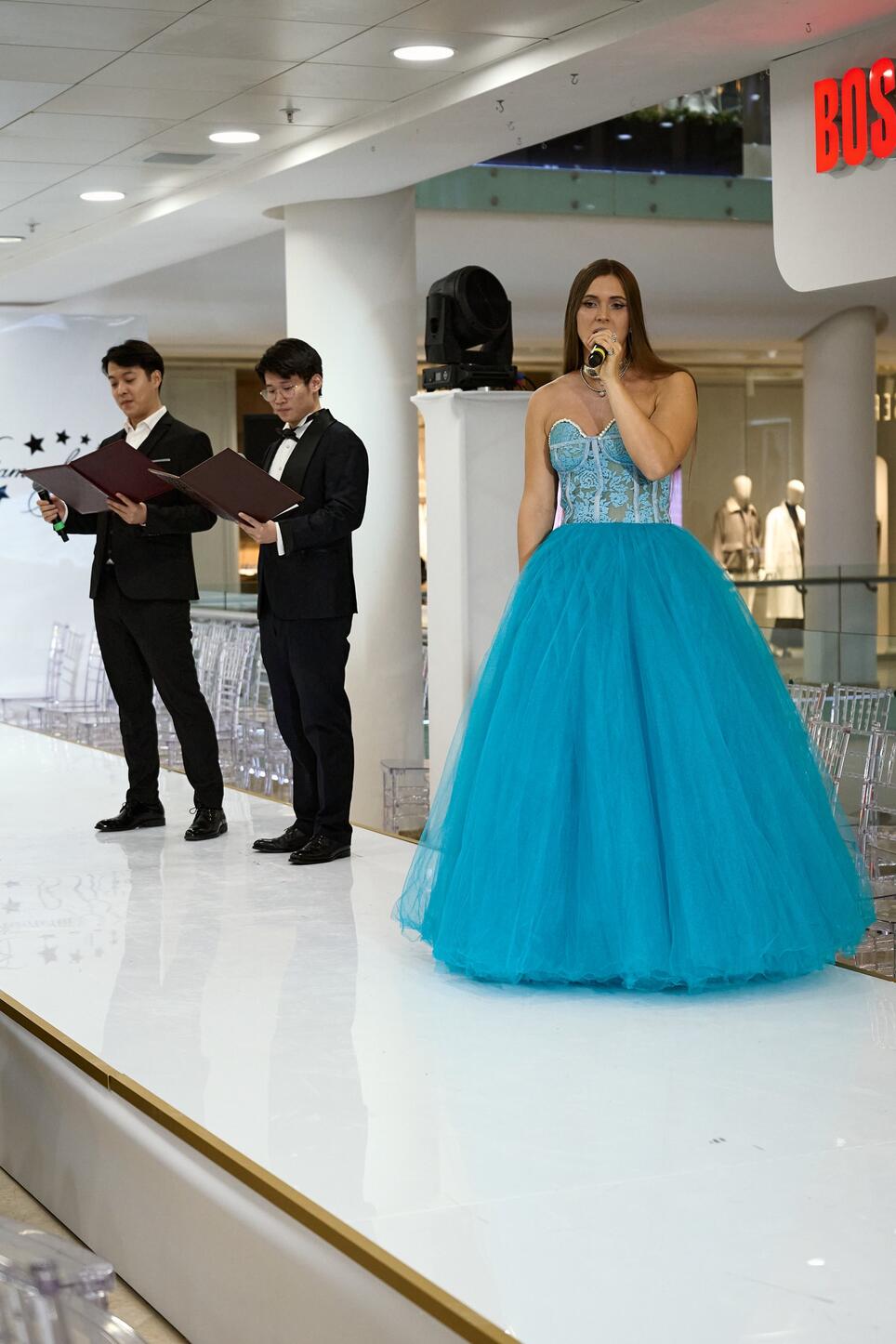 Вечер открылся отрывком из балета «Жизель». После чего танцовщики уступили место показу модных образов от магазина детской одежды, обуви и аксессуаров BOSCO OUTLET BAMBINO, где юные модники и модницы представили одежду для «особенного случая» таких знаковых брендов как Moschino, MonaLisa, IlGufo, MSGM, Stella Mccartney, BoscoBosco.