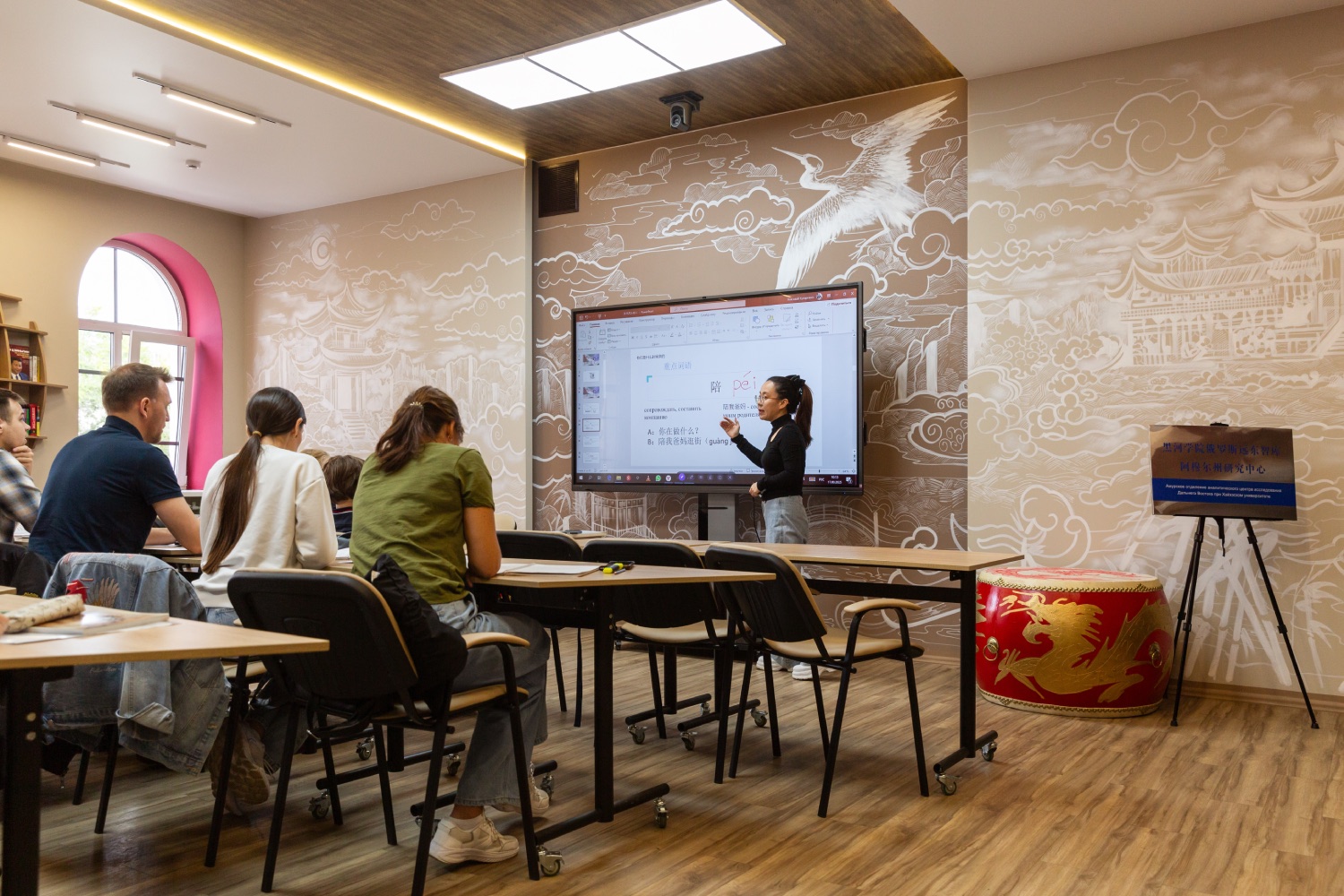 «Понять китайца» хотят все больше россиян. «Институты Конфуция — это центры по изучению китайского языка, созданные при вузах в разных городах. Наш — самый большой из них. В настоящий момент набрано 50 групп изучения китайского языка, — рассказывает Николай Кухаренко. — Часть из них мы открыли как дополнительные уже в сентябре, после объявления о безвизе в Китай число желающих учить китайский резко выросло. Сейчас у нас уже 750 слушателей на разных уровнях». В аудитории группа начинающих внимательно слушает преподавателя, этническую китаянку. Одни уверены, что китайский пригодится им в бизнесе, другие надеются применить его в путешествиях.