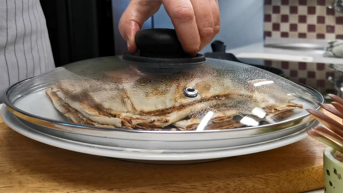 Как пожарили одну или две (это уж сколько на сковороде уместится) сразу смазываем сливочным маслом и под крышку. Пусть лежат пропитываются и становятся мягкими и гибкими.