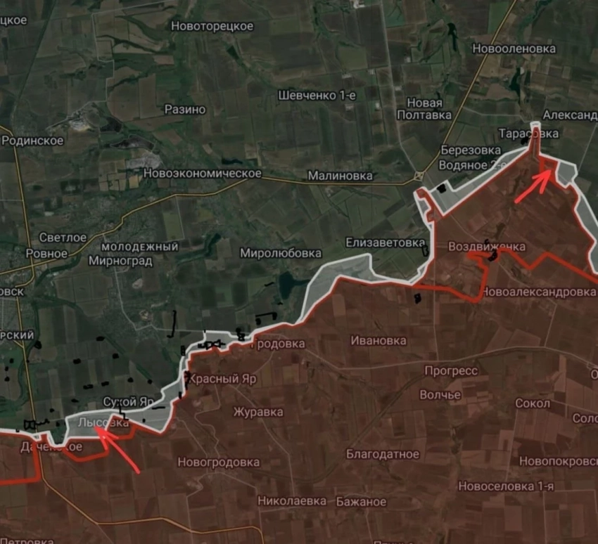 На Днепропетровском направлении севернее Андреевки ВС России продвигаются на участке шириной до 2.8 км на глубину до 1.15 км. Идут бои в направлении Котляровки и в Успеновке.