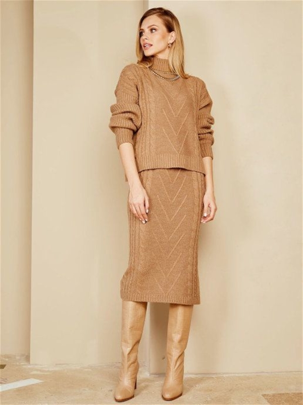 По удобству эта модель ничем не уступает брюкам. Её можно носить как с объемным свитером, добавив трендовые ботильоны и клетчатое пальто, так и с обтягивающим гольфом и сапогами-чулками.