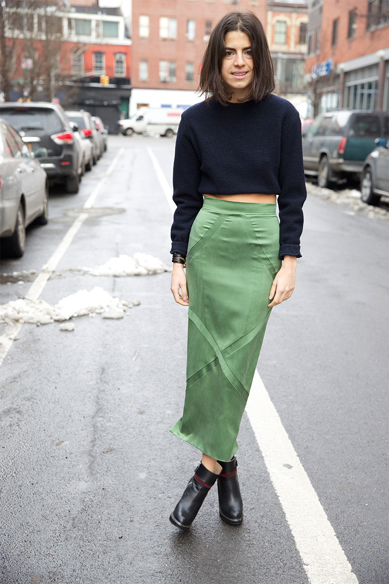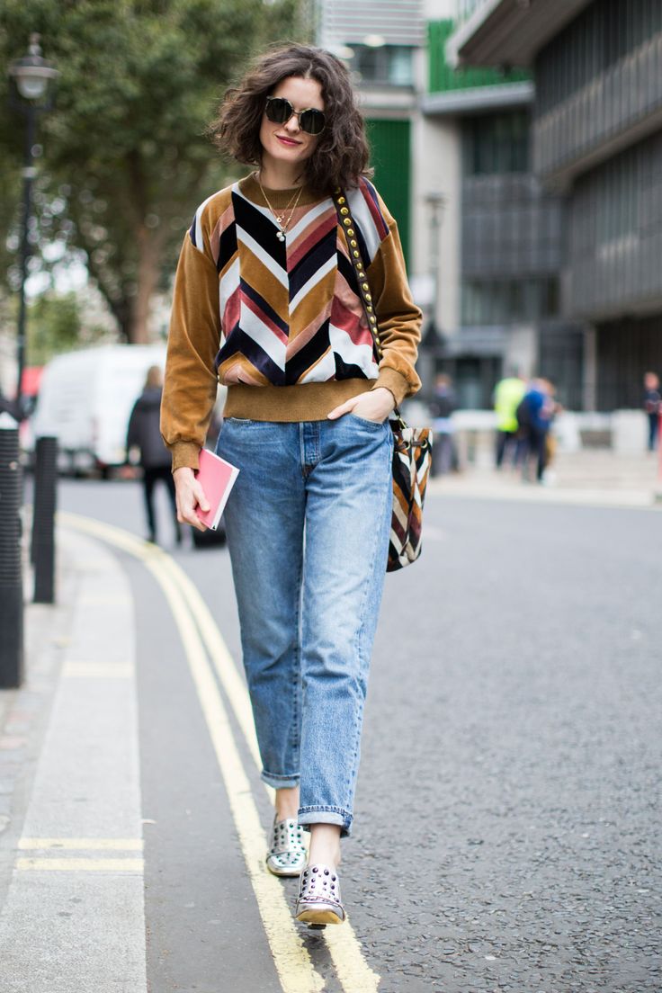 - В топе укороченный джемпер, который лучше всего носить в дуэте с высокими джинсами.