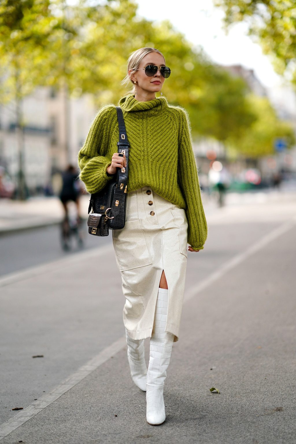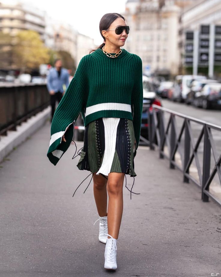 - В сезоне 2022 в тренде вязаные джемпера. Самой топовой считается крупная вязка на моделях оверсайз.