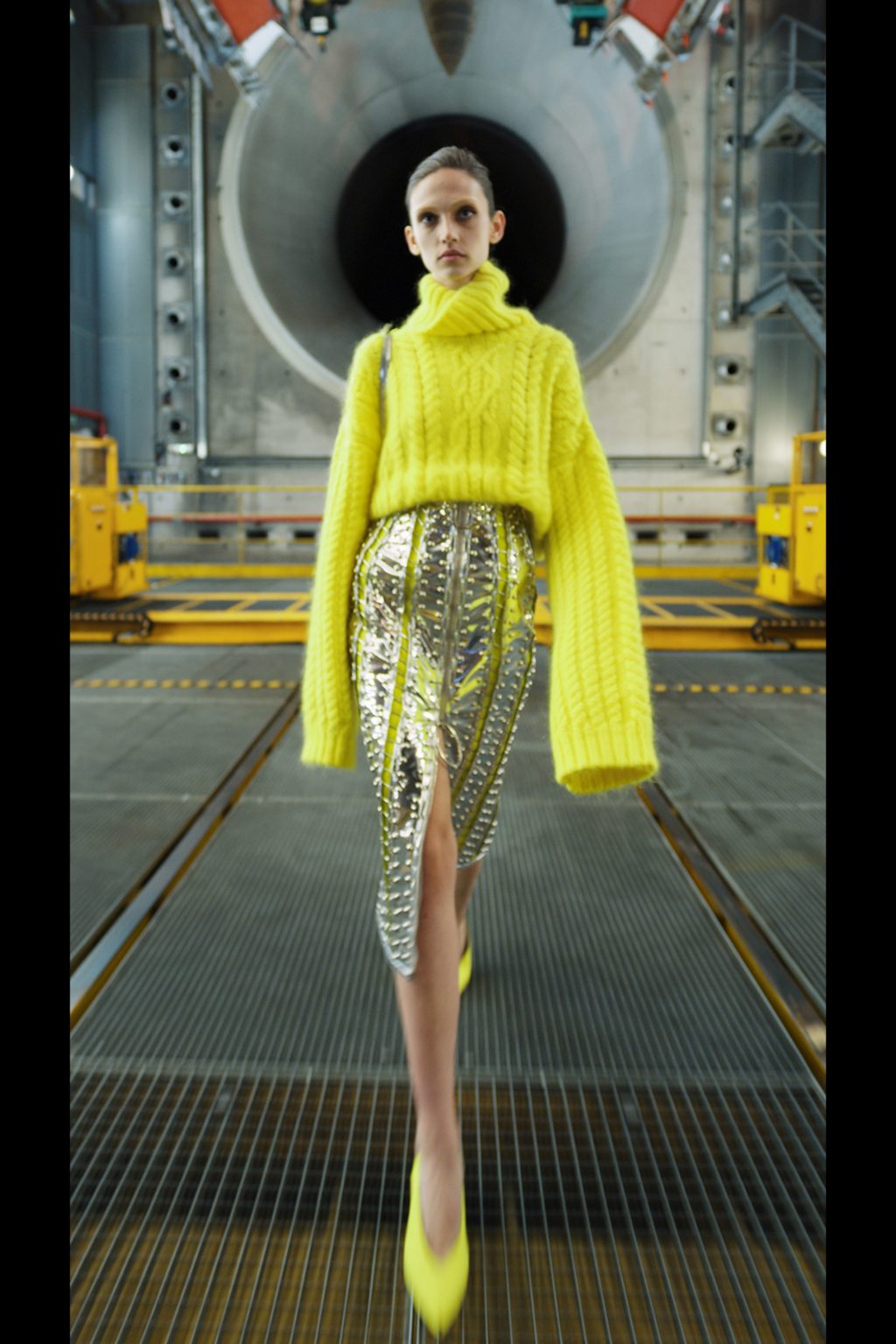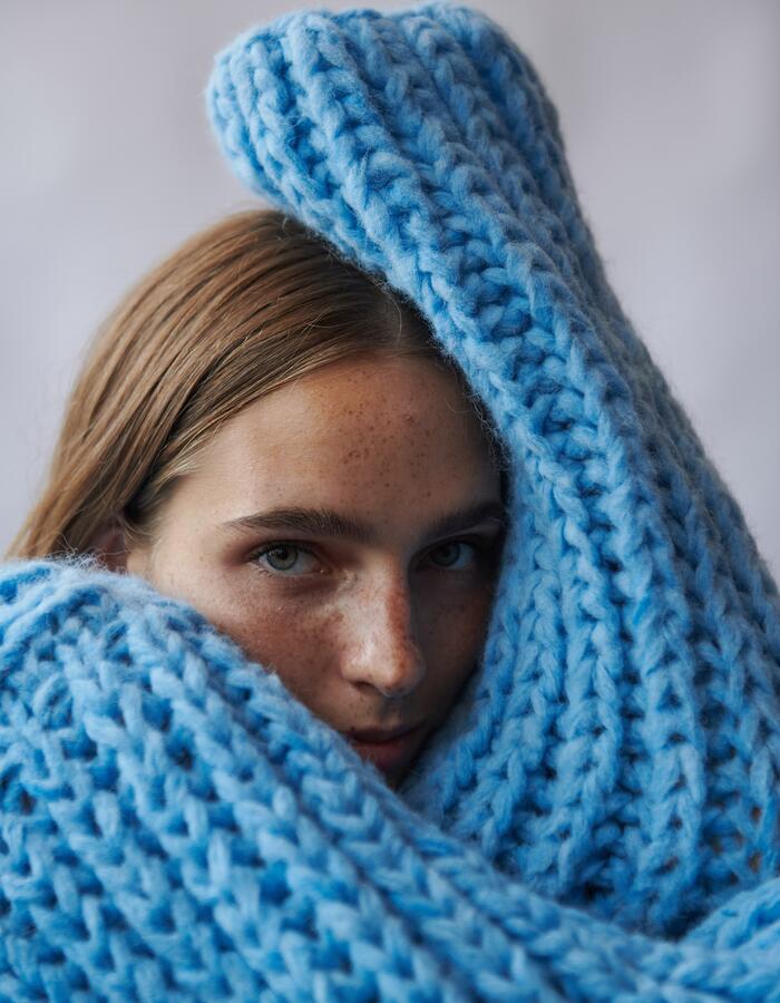 Однотонные свитера XXL крупной вязки с фактурными узорами-косами были представлены в коллекциях Balmain, Marni и Alexander Vauthier.