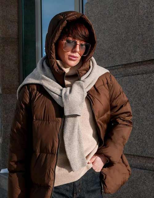 Вариативность пуховиков по длине, объему и цвету позволит выбрать модель идеально подходящую под образ жизни и погоду. Например, пуховики с объемным высоким или острым воротником не менее популярны, чем с капюшоном.