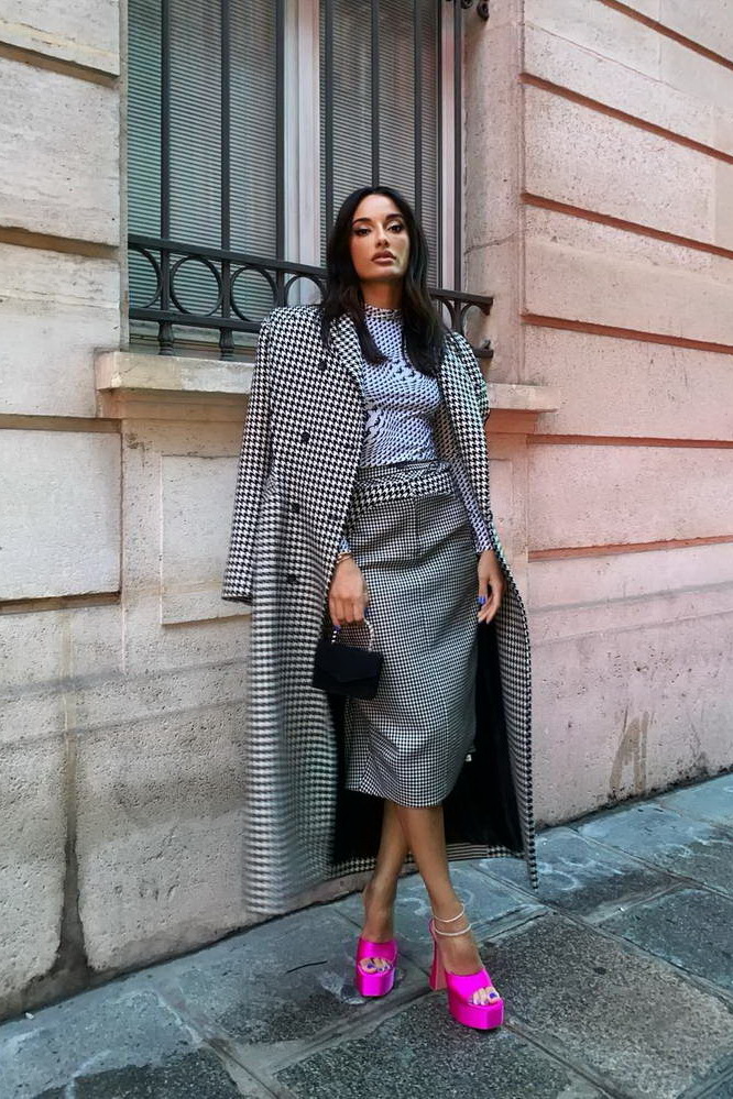 Более традиционный, но очень модный тренд – клетка. В моде нового сезона четко прослеживаются нотки британского стиля.