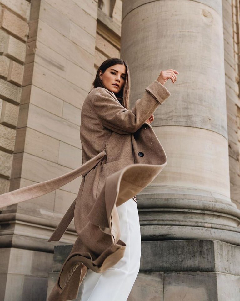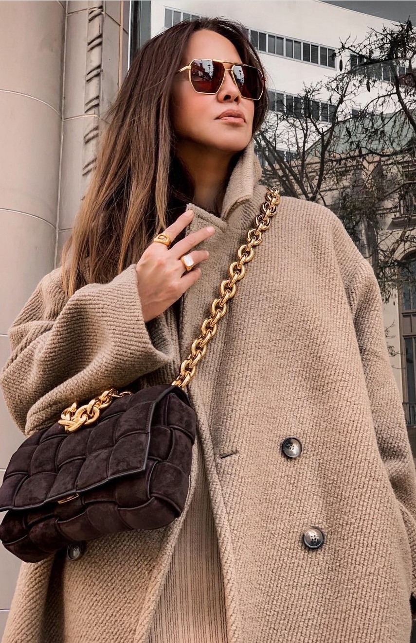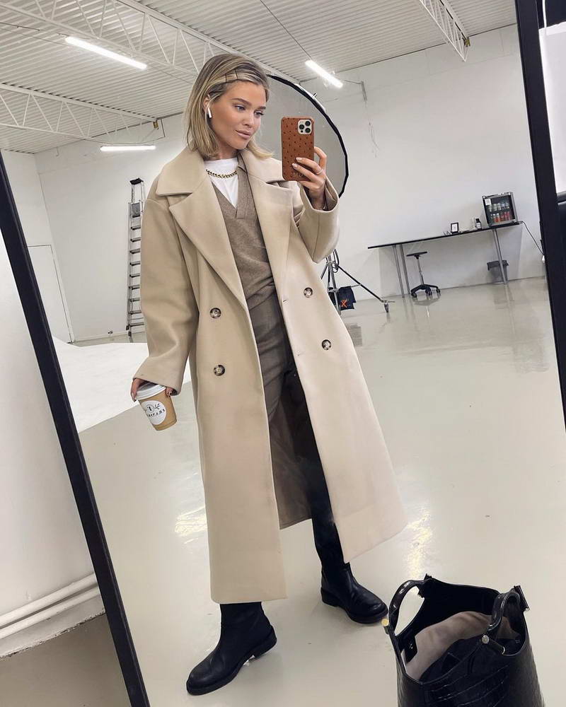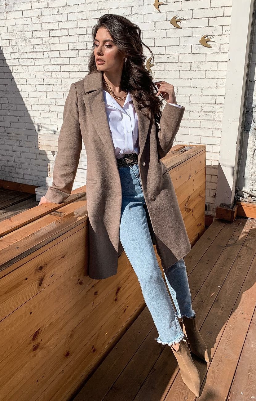 За счет своего объема, широких плеч и крупных пуговиц добавляет пальто флер маскулинности, который так популярен для женской моды в последнее время.