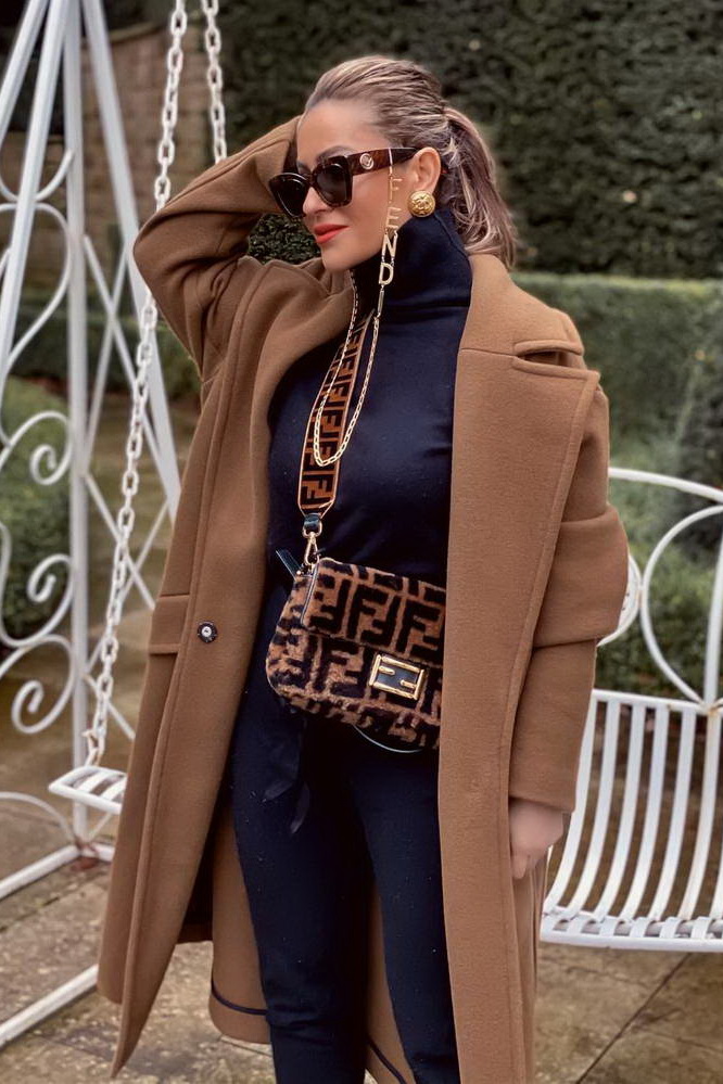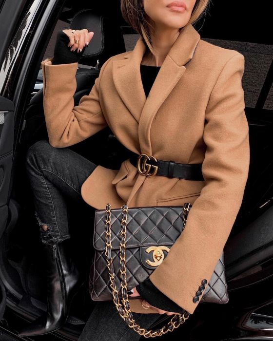 Еще одна новинка сезона – пальто с ремнем-логотипом известных брендов.