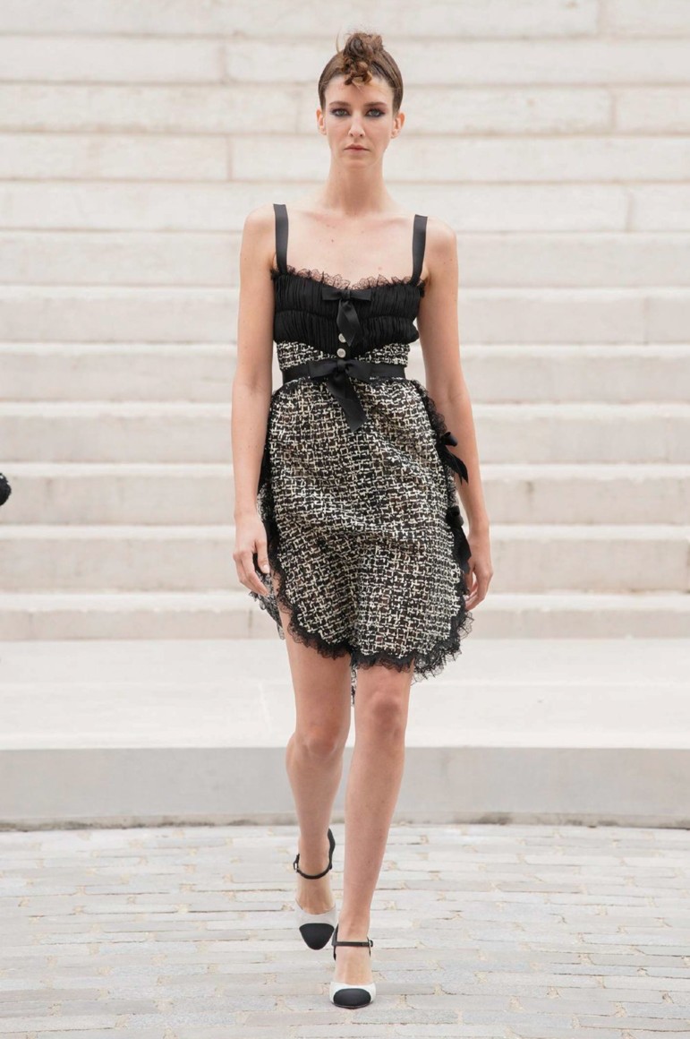 Твидовые платья – символ элегантности от Коко Шанель – уместны для вечернего образа с эффектными деталями в виде стильной шляпки и длинных перчаток. Ни один вечерний look предстоящей осенью и зимой не обойдется без золотых и серебристых тканей, деталей и аксессуаров.
