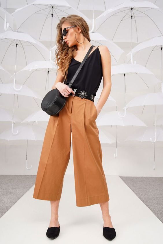 stylist.co.ukМногие стилисты предлагают сочетать кюлоты с зауженным верхом либо заправлять более свободные модели в брюки. Предлагаю не ограничиваться этим правилом и пробовать разные варианты. Обязательно примеряйте разные типы верха и смотрите, какие именно фасоны лучше всего смотрятся на вашей фигуре. Какие сочетаются делают образ свежее и оригинальнее, какие — прибавляют рост, делают стройнее, подчеркивают силуэт. Не забывайте, нет строгих правил, есть удачные образы, полученные путем экспериментов!