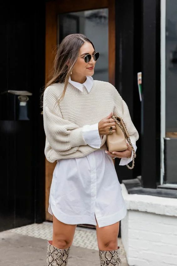 Такая базовая вещь, как свитер поистине универсальная вещь. Если накинуть его поверх одежды он не только согреет в прохланые осенние дни но и сделает образ более сложным и интересным.