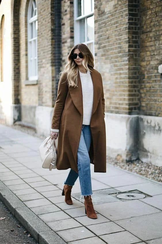 Эта уловка скорее для тех, кто не хочет, чтобы не “съедался” рост. Когда вы надеваете обувь примерно до щиколотки, выбирайте брюки, длины которых будет доходить до обуви и даже чуть ее перекрывать.