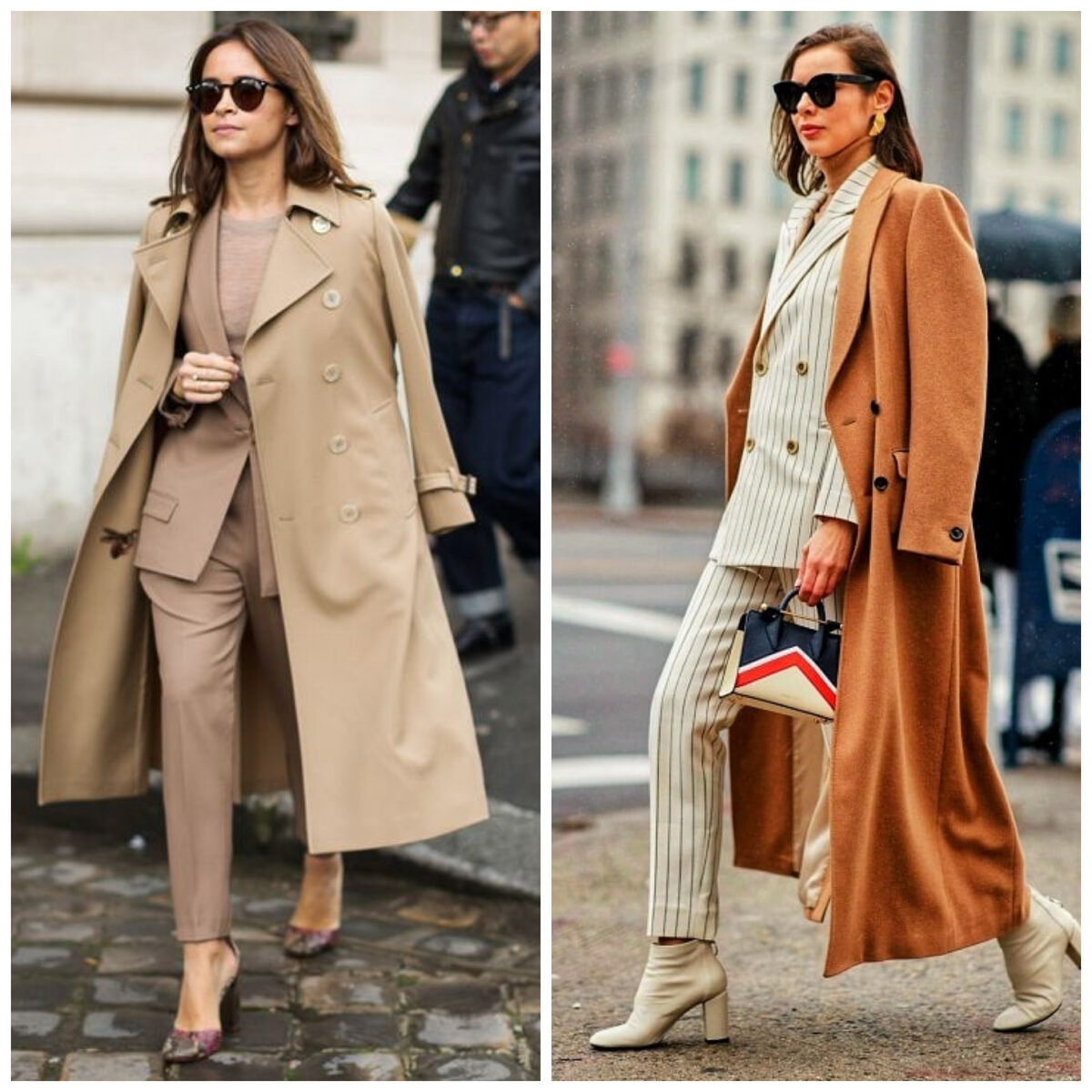 Тренч выбирайте в тон комплекту, но можно надеть и контрастный вариант.