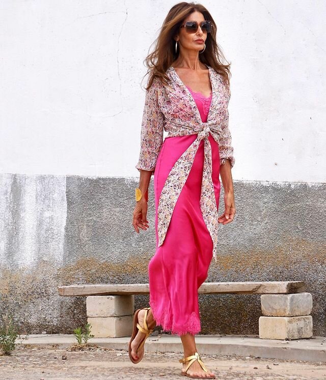 Постоянные читатели моей странички хорошо знакомы с этой испанкой. Она не красит свои седые волосы, не толстеет, умеет одеться ярко и, в то же время уместно.