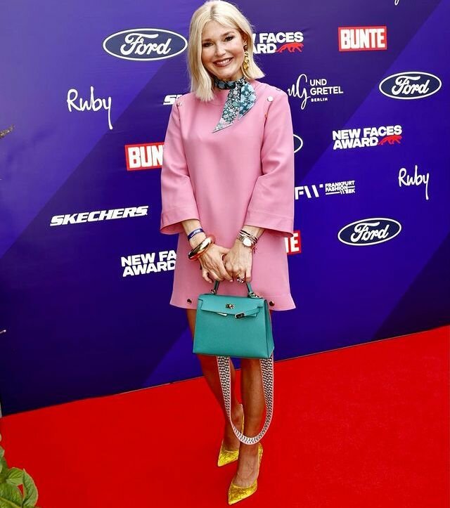 Мы уже выяснили, что розовый шок возрасту не помеха, наоборот. А уж если перед нами такая стильная и моложавая особа, как Патриция — тем более.