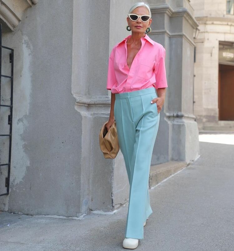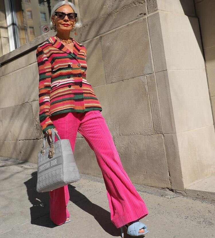Так как мы с вами на канале часто обсуждаем модниц в возрасте, посмотрим, пугают ли предрассудки по поводу розового их.