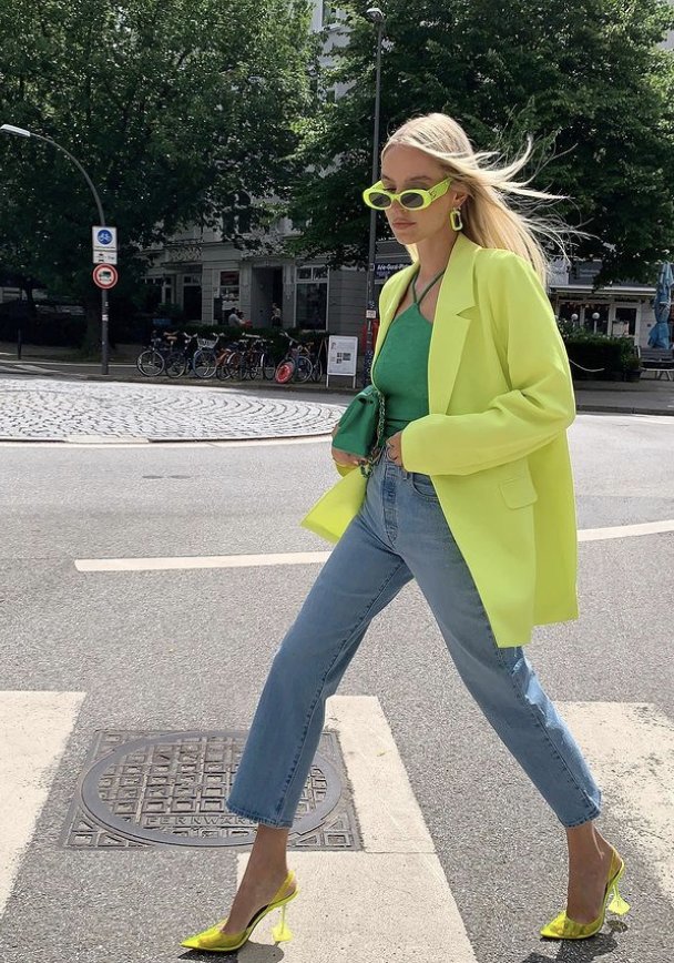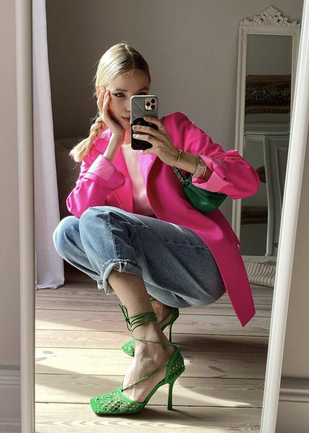instagram.com/greceghanem/Добавьте цвета. Чем ярче, тем лучше. В тренде сочный розовый, неоновый желтый, сочный зеленый. Эти цвета активно используются моделями, fashion-инфлюенсерами и стилистами по всему миру.
