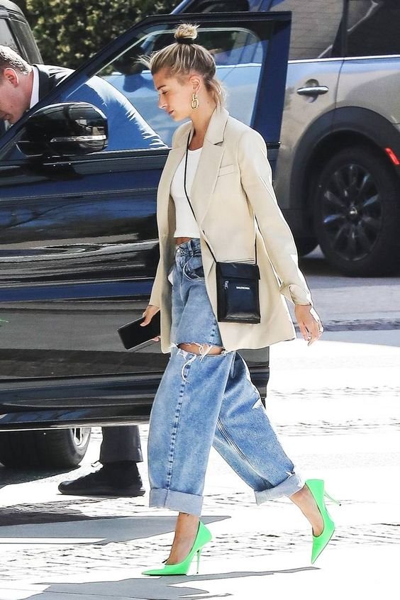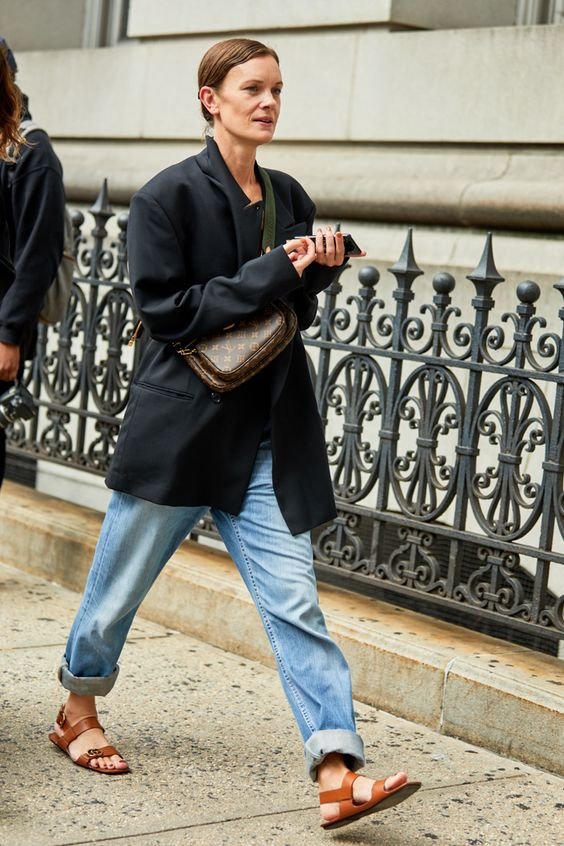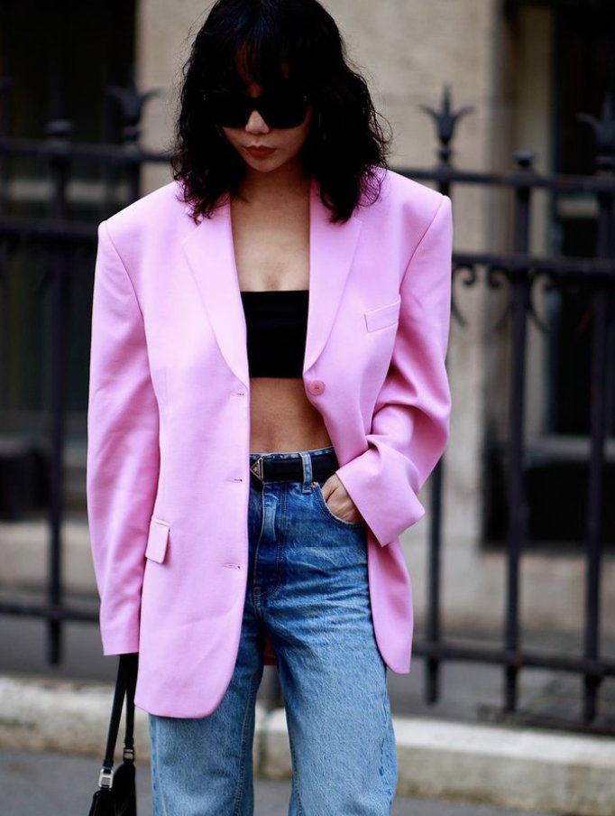whowhatwear.co.ukЕсли вы хотите составить более лаконичный интересный образ с джинсами, сделайте его в мужском стиле. Например, очень круто смотрятся джинсы с каким-нибудь кроп-топом или майкой в бельевом стиле, поверх которого надета мужская рубашка или пиджак в мужском стиле.